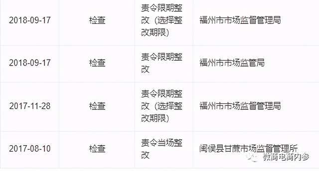 1.2017年8月10日,该公司遭闽侯县甘蔗市场监督管理所责令当场整改。