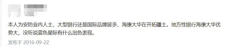 大型银行还是国际品牌居多,海康、大华在开疆拓土,地方性银行海康、大华优势大,没听说蓝色星际有什么出色表现。