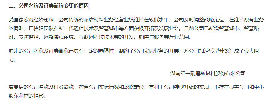 对于更名原因,华民股份在其公告中表示,受国家宏观经济影响,公司传统的耐磨材料业务经营业绩维持在较低水平。原来的公司名称及证券简称已具有一定的局限性,制约了公司实际业务的开展,对公司加速转型升级造成了较大阻力。变更后的公司名称及证券简称,符合公司实际情况和战略定位,有利于公司转型升级的实现,不存在损害公司和中小股东利益的情形。