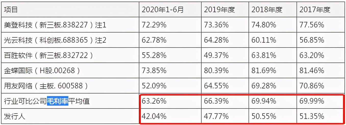 据招股书披露,2017-2020年上半年,南讯股份的毛利率分别为51.35%、50.55%、47.77%和42.04%,低于同期同行业上市公司毛利率均值,即69.99%、69.94%、66.39%和63.26%。报告期内,南讯股份的毛利率逐年下滑且明显低于同行业可比上市公司。