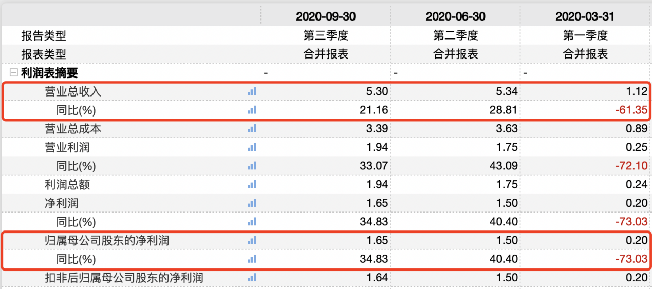 进一步来看,浙江美大2020年前三季度单季度营收分别为1.12亿元、5.34亿元和5.30亿元,同比增速分别为-61.35%、28.81%和21.16%;归母净利润分别为0.20亿元、1.50亿元和1.65亿元,同比增速分别为-73.03%、40.40%和34.83%。