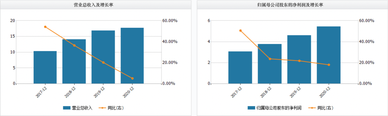 近日浙江美大发布了2020年业绩快报,2020年公司营业收入17.71亿元,净利润5.43亿元,均同比增长。然而,业内人士分析称:看似营收净利双增长的漂亮财报,实则浙江美大的营收净利增速早已放缓。