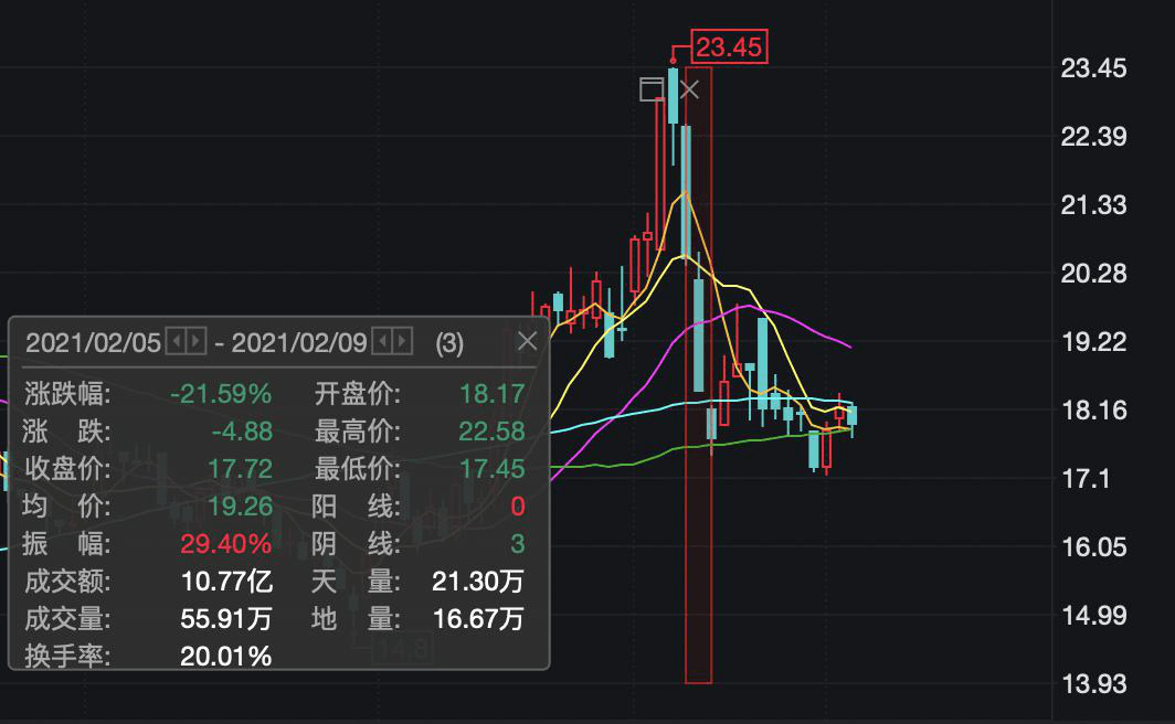 随后,公司股价迎来三连跌:2月5日,浙江美大收报20.50元,跌幅9.29%;2月8日,浙江美大收报18.45元,跌幅10.00%;2月9日,浙江美大收报17.72元,跌幅3.96%。若以2月4日收盘价22.60元计算,本次市场波动后,浙江美大市值蒸发31.53亿元。此后,虽勉强止住颓势,但浙江美大股价仍处于较低区间。截至3月3日,浙江美大收报17.98元。