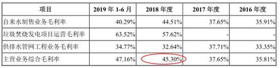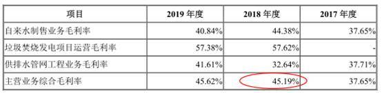 招股书称,2018年、2019年,公司主营业务综合毛利率较上一年分别提升7.54%、0.43%,主要原因为:一方面,公司自来水价格自2017年9月上调,导致2018年自来水制售业务毛利增长幅度较大;另一方面,2018年公司新增垃圾焚烧发电业务且该业务毛利率较高,从而进一步提高2018年、2019年公司主营业务综合毛利率。