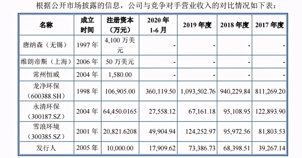 在末端污染治理领域,发行人的竞争对手主要为龙净环保、永清环保、雪浪环境等上市公司。