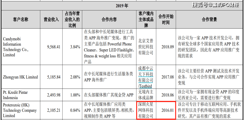 根据招股书披露,“深圳市火星网络有限公司”是易点天下自2016年开始合作的客户,2019年还以2105.21万元的销售额成为易点天下的第4大客户。易点天下并未披露与这家公司存在关联关系。