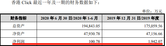 其他子公司均在境外,通过香港Click持股。香港Click主营互联网营销业务,并作为公司境外投资的主体,该公司在2019年和2020年1-6月份的报告期内分别实现净利润1942.07万元、100.78万元。
