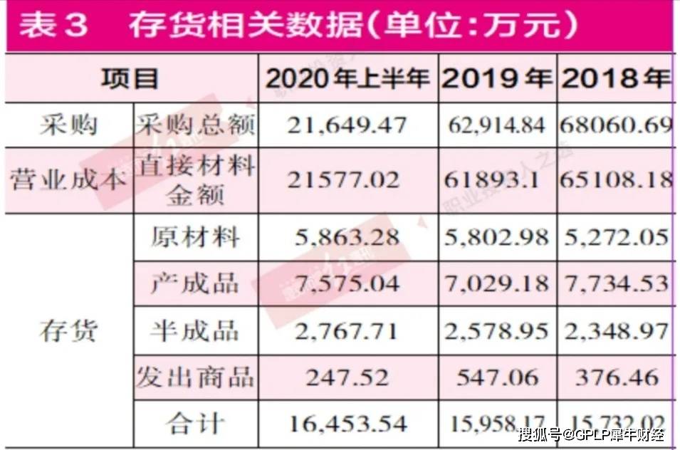 除了营收数据、采购数据上的疑点,上声电子的存货数据也令《红周刊》记者有些不解。在招股说明书中,上声电子披露了2018年至2020年上半年的原材料采购总额,分别为6.8亿元、6.29亿元和2.16亿元。
