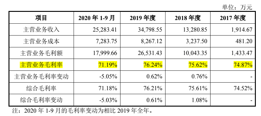 即便是同期主营业务的毛利率高达74.87%、75.62%、76.24%及71.19%;净利润却还是为负,分别为-0.24亿元、0.16亿元、-1.50亿元、-0.94亿元。