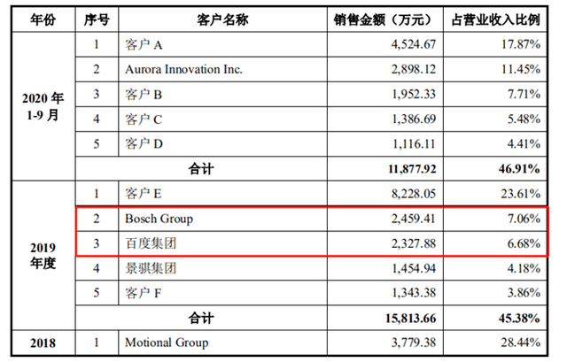 值得注意的是,自此之后百度从禾赛科技2020年的前五大客户名单中“消失”,一同消失的还有博世。