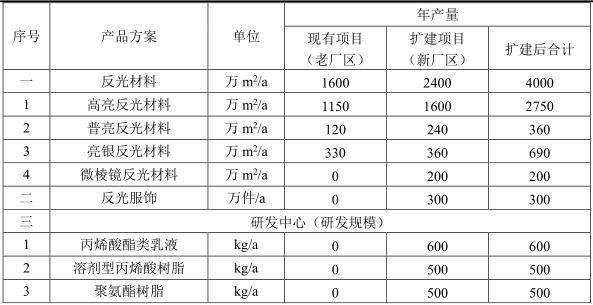 根据该项目编制于2020年2月的环境影响报告表,星华反光目前全厂审批产能为年产4,000万平方米反光材料,其中年产反光布2,400万平方米生产项目未实施(最近审批项目(环评批复[2017]513号)未实施),因此目前企业实际生产产能为年产1,600万平方米反光材料。而本次异地改扩建项目实施后,星华反光全厂将形成年产4,000万平方米反光布、300万件反光服饰的生产规模。
