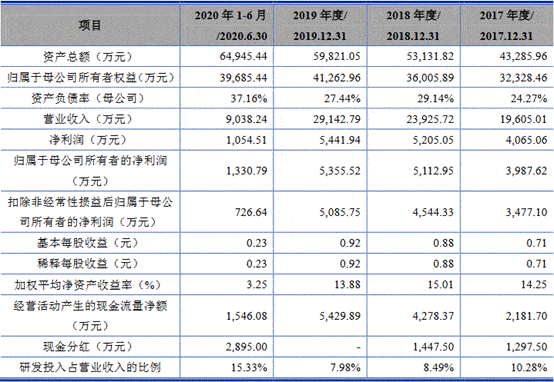 2016年、2017年、2018年、2019年和2020年1-6月,艾隆科技实现营业收入分别为1.64亿元、1.96亿元、2.39亿元、2.91亿元和9038.24万元;实现净利润分别为2117.89万元、4065.06万元、5205.05万元、5441.94万元和1054.51万元。