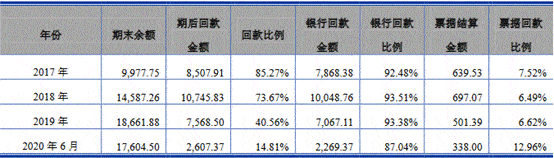 截止2020年9月21日,报告期各期末,艾隆科技的应收账款回款比例分别为85.27%、73.67%、40.56%、14.81%,期后回款比例较低。