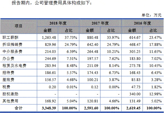 2016年、2017年、2018年、2019年和2020年上半年,艾隆科技管理费用分别为2619.45万元、2591.60万元、3348.39万元、3412.10万元和1442.07万元,管理费用率分别为15.98%、13.22%、13.99%、11.71%和15.96%。