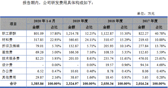 据中国经济网记者了解,该公司研发费用的增长主要系研发人员薪酬增加所致。该公司研发及设计人员从2017年底的71人增至2020年6月的117人,职工薪酬、研发领料消耗随之提高。