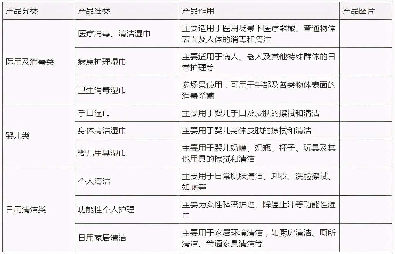 维尼健康的湿巾产品涵盖了医用及消毒类、婴儿类、日用清洁类等多个系列,其中以医用及消毒类湿巾和婴儿类湿巾为核心产品。