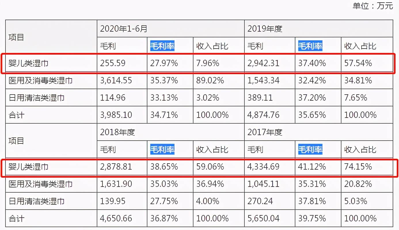 婴儿类湿巾毛利率“节节败退”