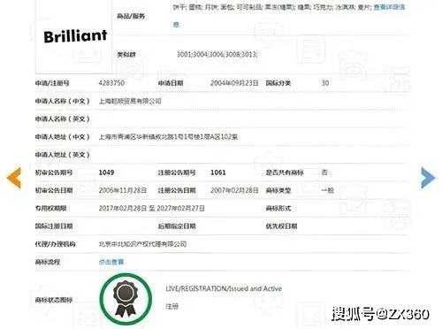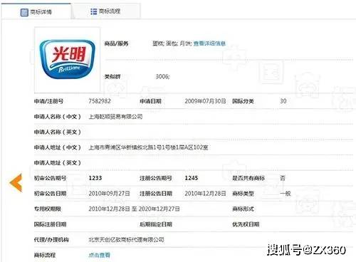 从中国商标网查询得知,Brilliant商标及光明商标确系上海乾顺贸易有限公司所有,但商标类别仅包含饼干、蛋糕、面包、月饼、可可制品、果冻、糖果、巧克力、冰淇淋、麦片,未写明包含饮料类。