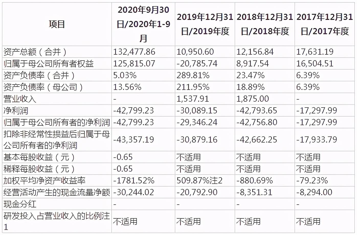 招股书显示,2017-2020年第三季度,海和药物的资产负债率(合并口径)分别为6.39%、23.47%、289.81%和5.03%;同期母公司资产负债率分别为6.39%、18.89%、211.95%和13.56%。无论是合并口径还是仅统计母公司,2019年海和药物的资产负债率均超过200%。