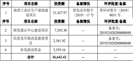万代股份原拟在深交所中小板公开发行股票数量2362.75万股,公开发行股票全部为新股,原股东不公开发售老股,拟募集资金3.66亿元,分别用于海湾工业区生产基地建设项目、研发展示中心建设项目、信息化升级改造建设项目、补充流动资金。