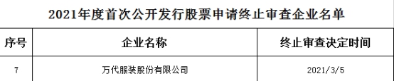 中国经济网北京3月15日讯 据中国证监会官网3月12日消息,中国证监会决定对万代服装股份有限公司(以下简称“万代股份”)首次公开发行股票申请终止审查。