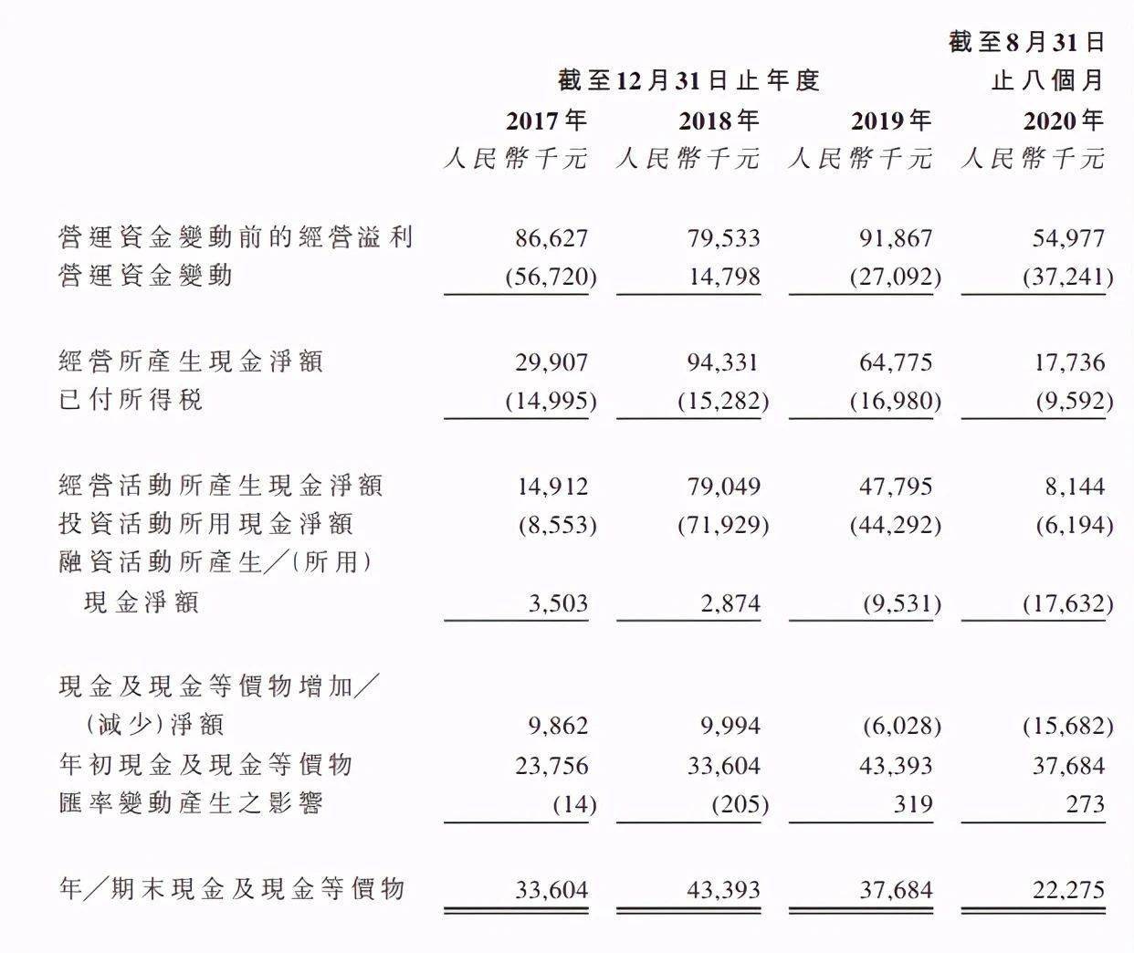数据显示,2018年、2019年及2020年前八个月,此间久久王流动资产净额一直为负,持续的流动负债给公司带来较大财务压力,久久王也在招股章程风险因素中提及“无法保证将来不会经历流动负债净额时期”。