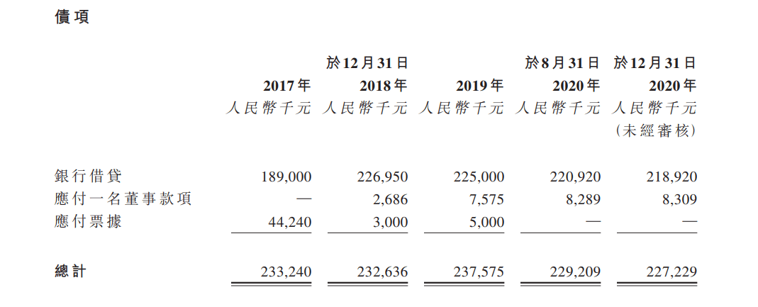 2018年、2019年及2020年前八个月,久久王经营所产生的现金净额分别为9433.1万元、 6477.5万元及 1773.6万元,呈下滑趋势。与此同时,久久王的银行借贷也维持在一个不小的数额,截止至2020年8月31日,久久王的银行借贷是2.21亿元。