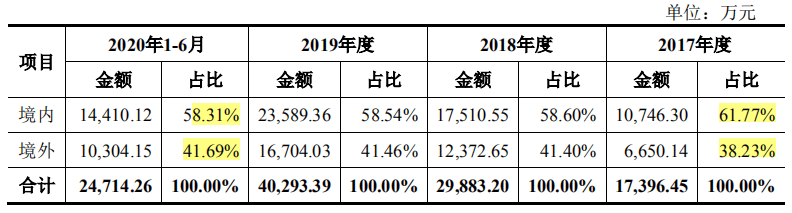 境外收入占比6成左右,销售费用率高于同行平均值约2-4倍