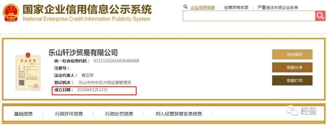 但据国家企业信用信息公示系统却显示,轩沙贸易成立于2018年1月22日,贝泰妮是如何提前近3年与一个当时并不存在的公司达成合作?