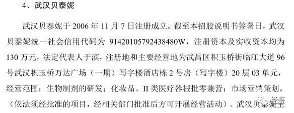 无独有偶,据招股说明书披露,武汉市贝泰妮生物科技有限公司是贝泰妮的控股子公司,该公司法定代表人为于滨。