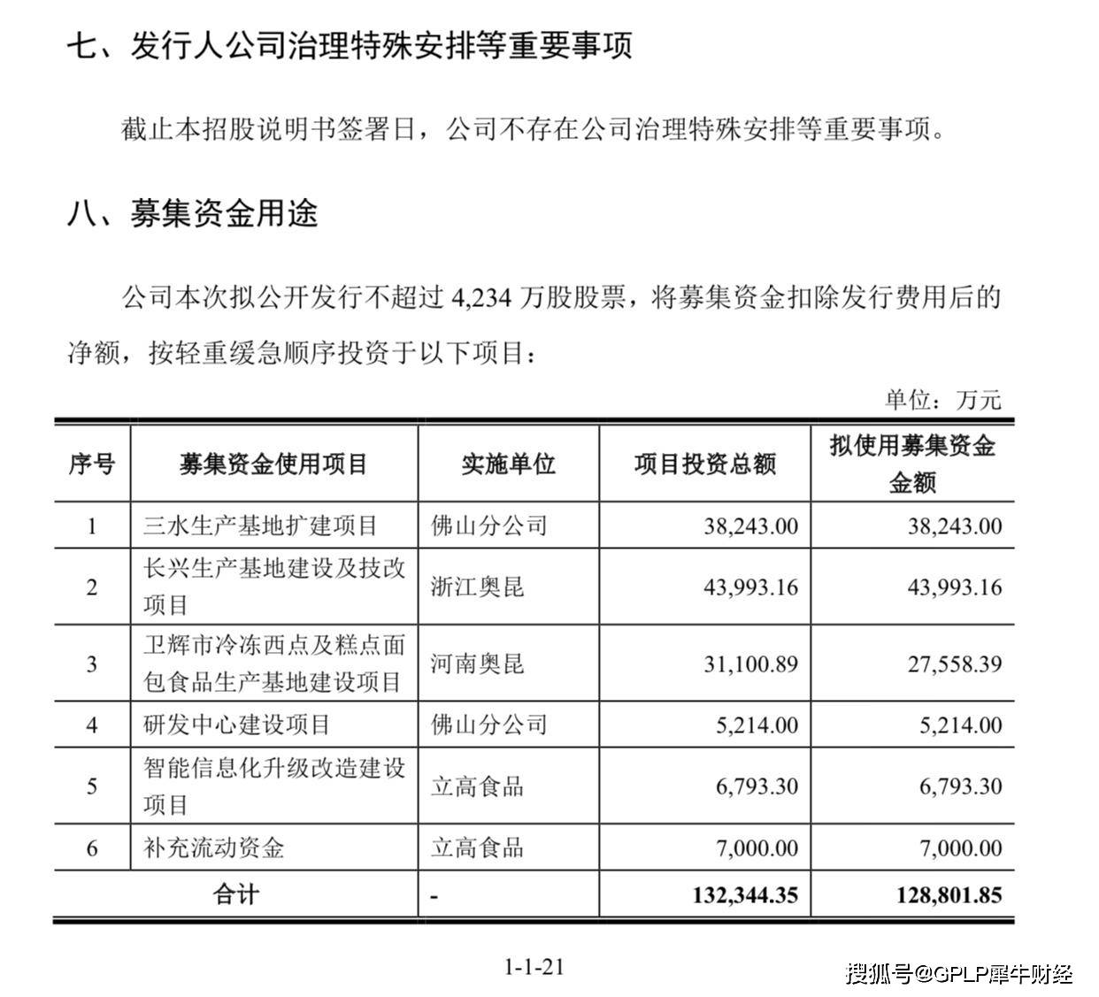 对此,立高食品表示,主要是用于生产基地的项目建设以及改造,其中的7000万元用于补充流动资金。