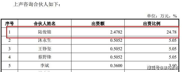 然而,上声咨询合伙人持股排名第一的陆俊锦,究竟何许人,招股书并未披露。排名第二的沐永生和第四的蔡野锋均是公司核心技术人员。