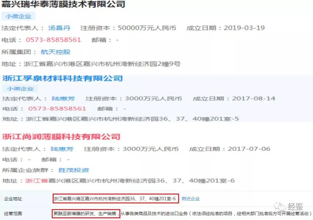 更为“巧合”的是,尚润薄膜的经营地址,与嘉兴瑞华泰同样位于都位于嘉兴市杭州湾新经济园。