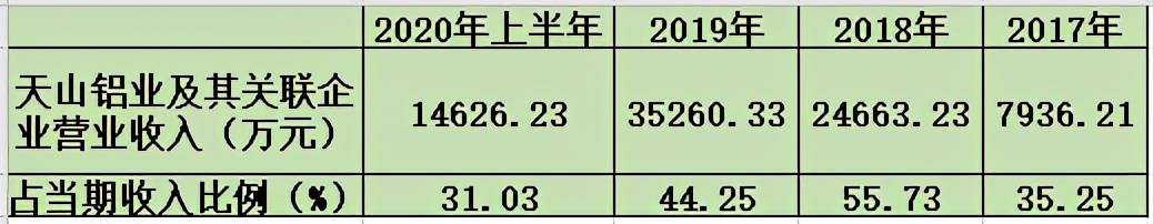 其中,炬申物流的第一大客户为天山铝业及其关联企业,2017年-2020年上半年,炬申物流对天山铝业及其关联企业的营业收入分别为7936.21万元、2.47亿元、3.53亿元和1.46亿元,占当期收入的比例分别为35.25%、55.73%、44.25%和31.03%,占比较高。