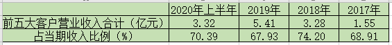 据招股书数据显示,2017年-2020年上半年,炬申物流的前五大客户营业收入合计分别为1.55亿元、3.28亿元、5.41亿元和3.32亿元,占当期主营收入的比例分别为68.91%、74.20%、67.93%和70.39%。炬申物流对大客户较为依赖。