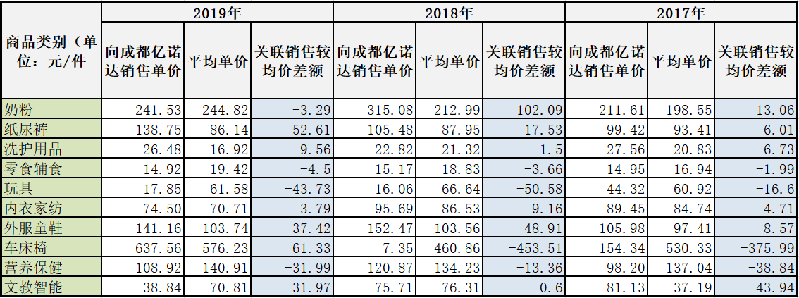 与此同时,孩子王向成都亿诺达销售产品的价格与向全部客户销售的平均单价出现了较大的差距。