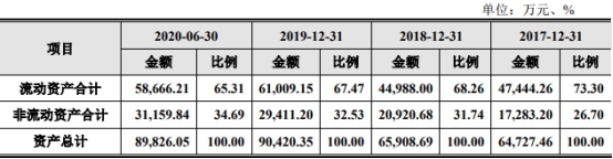 2017年至2020年1-6月,有研粉材资产总计分别为6.47亿元、6.59亿元、9.04亿元、8.98亿元,其中,流动资产分别为4.74亿元、4.50亿元、6.10亿元、5.87亿元。