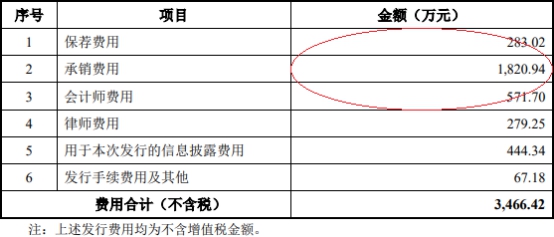有研粉材此次发行费用为3466.42万元,其中,长江证券承销保荐有限公司获得保荐费用283.02万元,长江证券承销保荐有限公司及联席主承销商中信建投证券股份有限公司获得承销费用1820.94万元,天职国际会计师事务所获得会计师费用571.70万元,北京市金杜律师事务所获得律师费用279.25万元。