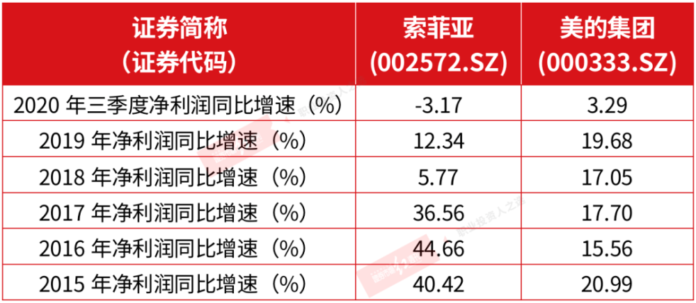 表1:索菲亚和美的集团近三年与之前三年业绩对比一览