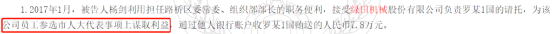 据招股说明书披露,罗国昌曾涉及原台州市路桥区委常委、常务副区长杨剑受贿一案,罗昌国个人于2017年1月向其行贿人民币7.8万元。招股书仅用这一句话概括了罗昌国的行贿行为,而据(2019)浙1021刑初448号刑事判决书显示,杨剑利用担任路桥区委常委、组织部部长的职务便利,接受绿田机械罗昌国的请托,为该公司员工参选市人大代表事项谋取利益。