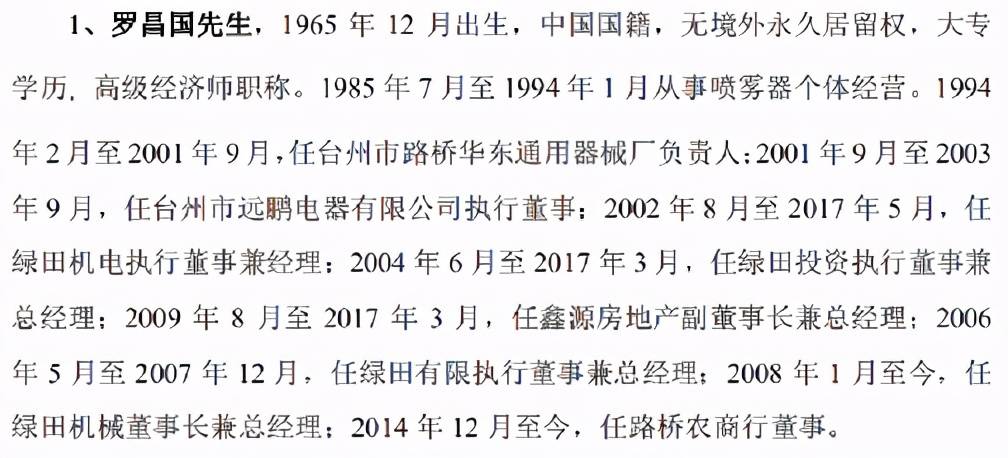 据招股说明书披露,罗昌国直接持有绿田机械71.34%的股份,是公司的控股股东、实际控制人,并于2008年1月至今担任绿田机械董事长兼总经理。