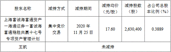 中国经济网北京3月18日讯武汉凡谷(002194.SZ)昨日晚间发布关于控股股东及一致行动人股份减持计划实施完毕的公告。根据公告,本次股份减持计划中,武汉凡谷股东上海富诚海富通资产-海通证券-富诚海富通稳胜共赢十七号专项资产管理计划于2020年11月25日通过集中竞价交易减持263.04万股股份,占该公司总股本比例0.3889%,减持均价17.60元,套现4629.50万元。