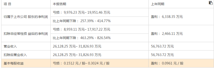 该公司2020年的业绩预告显示,预计2020年归属于上市公司股东的净利润亏损9976.23万元-19951.46万元;预计扣非后净利润亏损8959.11万元-17917.22万元。该公司表示,2020年公司生产情况受新冠肺炎疫情影响较为严重,公司上下游企业复工缓慢,加之疫情影响导致各级医疗终端门诊量减少,处方药终端总体需求下降,主营业务收入较上期有明显减少。