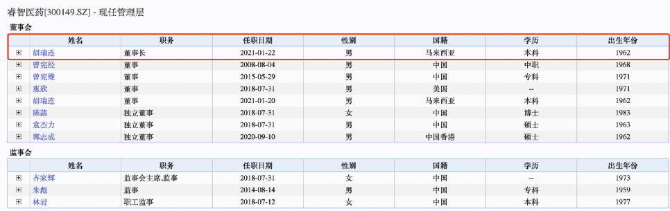 公开资料显示,胡瑞连为马来西亚国籍,现年59岁。