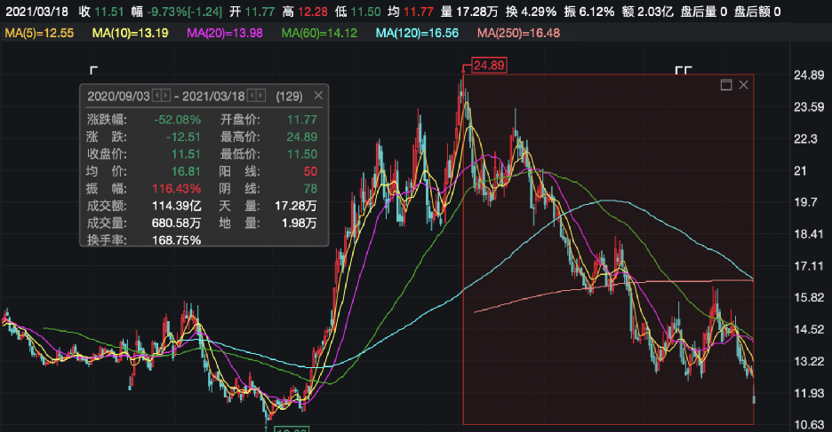 自2020年9月份以来,睿智医药便一直处于震荡下跌的状态,至今已经累计跌超52%,市值蒸发约67亿元。