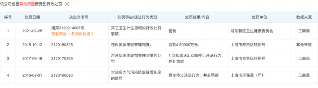 不过,这已经不是凯惠药业首次因污染环境受罚。天眼查数据显示,早在2016年、2017年、2018年凯惠药业多次遭受相关部门的处罚。