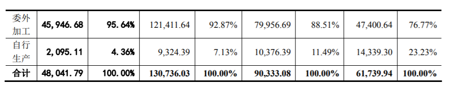 周六福很依赖委外加工,报告期内,委外加工的成本分别为4.74亿元、7.95亿元、12.14亿元和4.59亿元,占总加工成本的比例不断提高至九成。