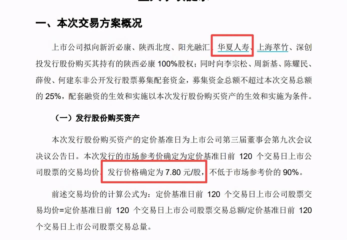 在众多的投资中,华夏保险也踩中了多个风险股。例如延安必康、同洲电子、勤上光电等。2015年4月,陕西必康借壳九九久上市,彼时华夏保险投资10亿元,进入延安必康的股东名单。根据交易方案,九九久拟以发行价格7.80元/股向新沂必康、陕西北度、阳光融汇、华夏保险、上海萃竹、深创投发行股份购买其持有的陕西必康100%股权,其中华夏保险-万能保险产品持股6.57%,为第四大股东。