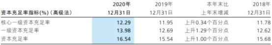 资本充足率方面,截至2020年末,招商银行的资本充足率为16.54%,比上年末上升1.00个百分点 ;一级资本充足率为13.98%,比上年末上升1.29个百分点;核心一级资本充足率为12.29%,比上年末上升0.34个百分点。