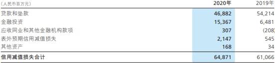 2020年,招商银行信用减值损失648.71亿元,同比增长6.23%;其中,贷款和垫款信用减值损失468.82亿元,同比下降13.52% ;金融投资信用减值损失153.67亿元,同比增长137.11%,主要是对理财回表资产按照其风险情况,基于预期信用损失模型计提了减值损失。